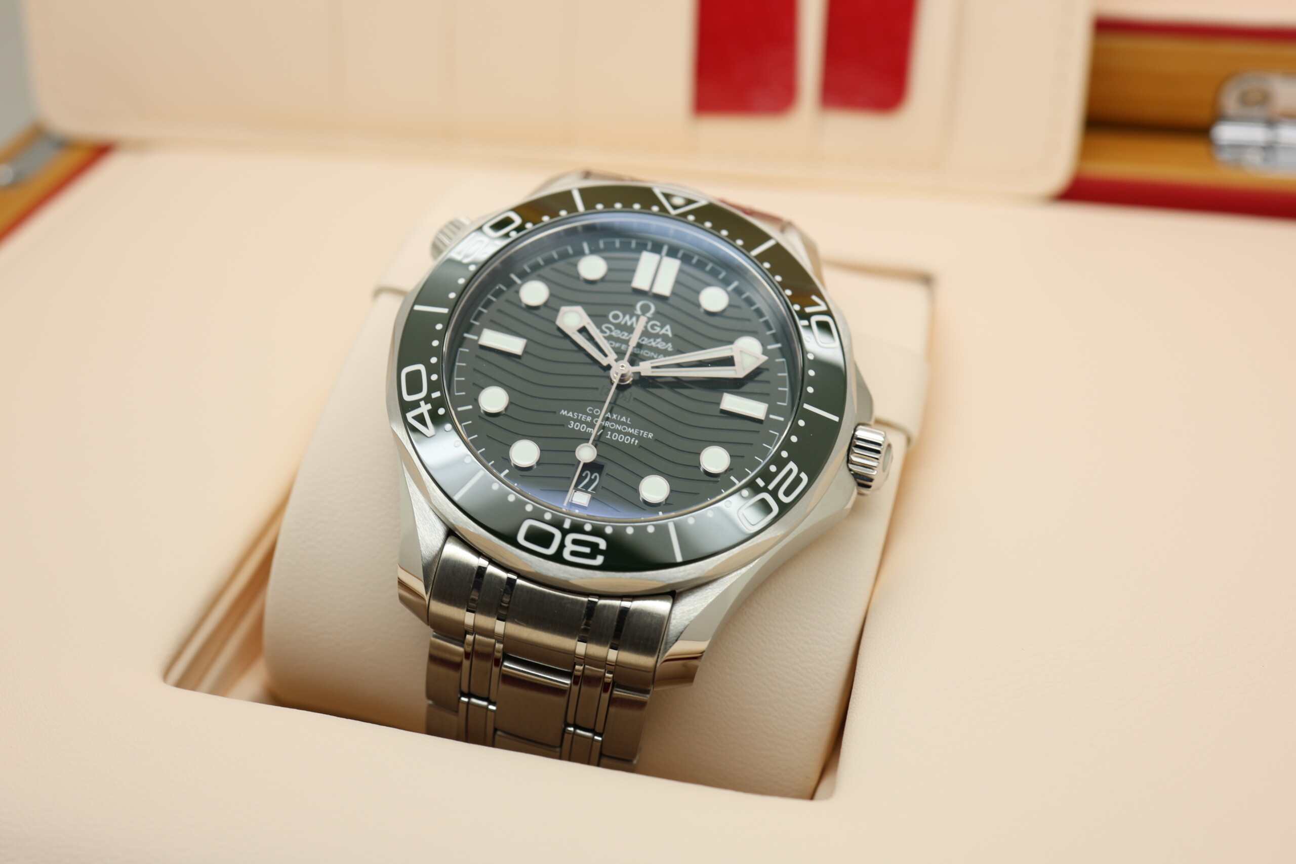 The green Seamaster is often nicknamed the “Seaweed”, a colorway that has quickly become one of the most desirable modern Seamaster variants among collectors.