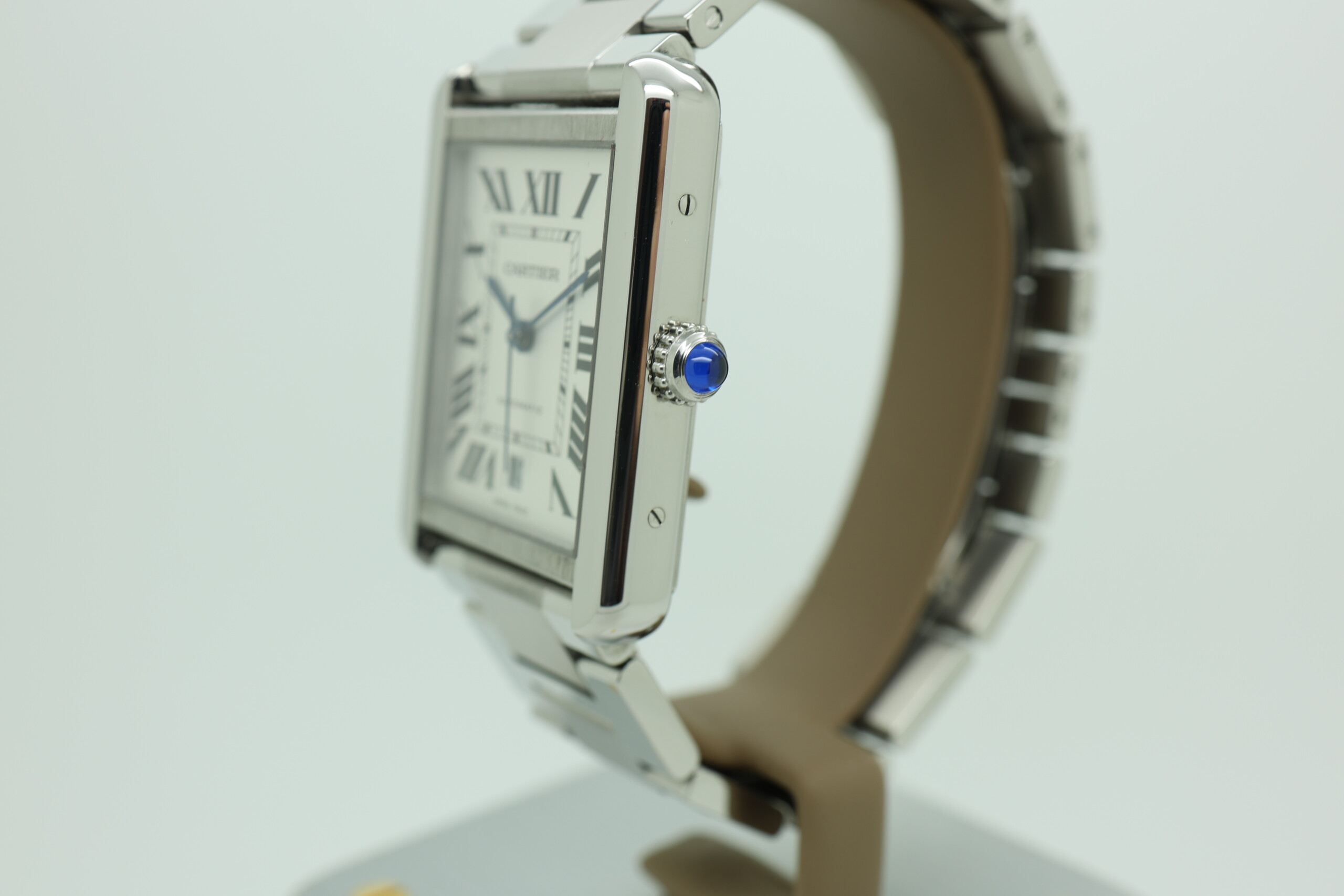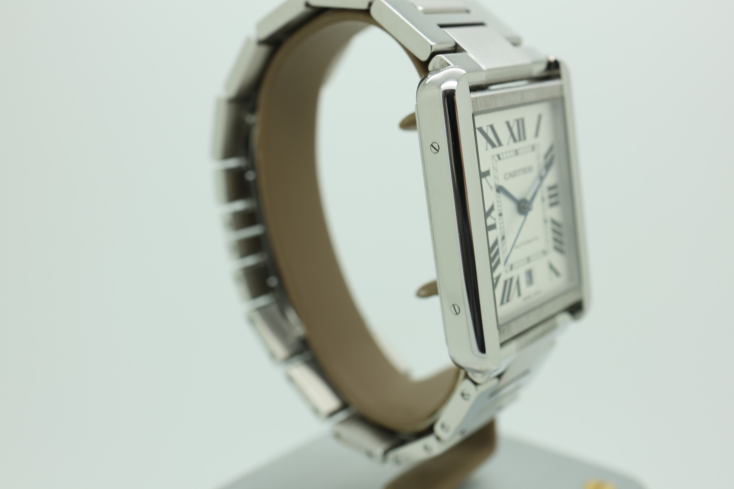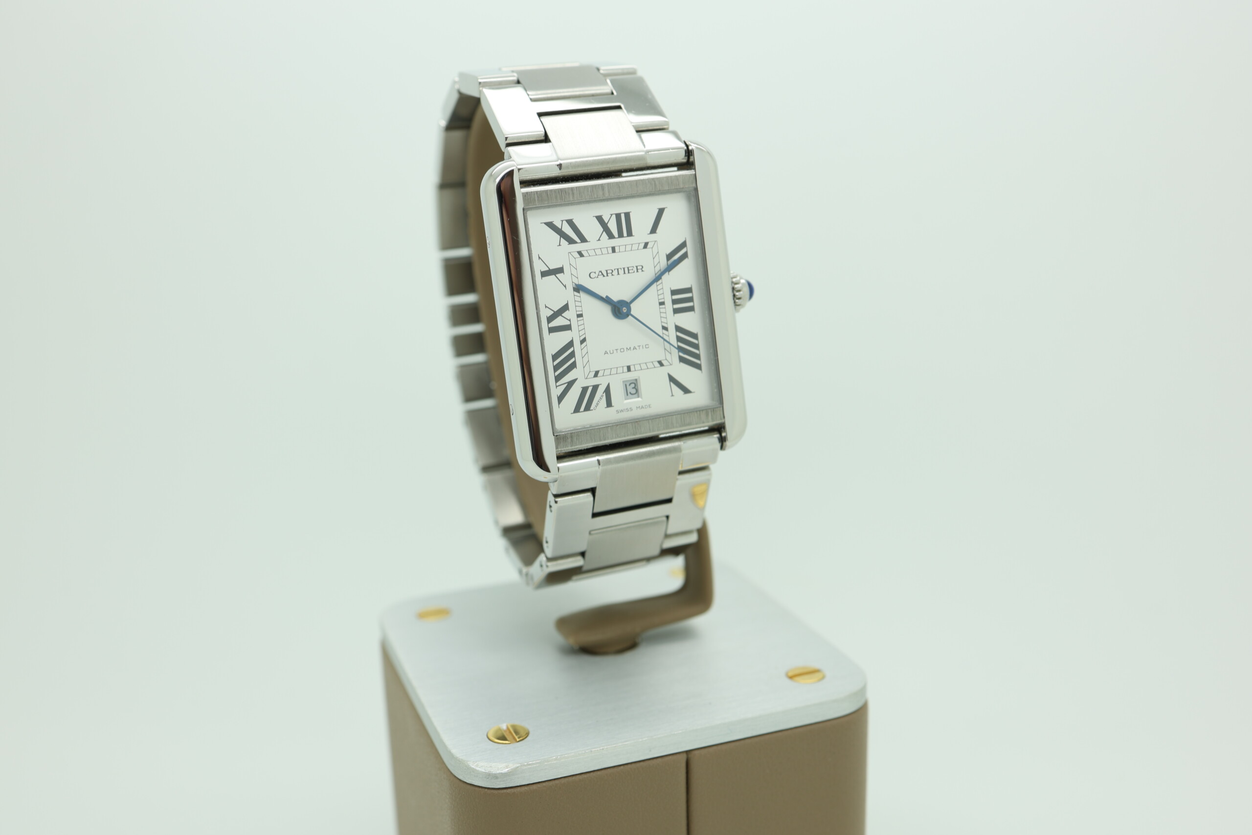 This XL variant offers a modern presence while maintaining classic proportions, featuring a stainless steel case paired with a silvered opaline dial and blued steel hands. What sets this model apart is its automatic movement, providing both convenience and mechanical sophistication—an upgrade from the traditional quartz versions often seen in the Tank Solo line.